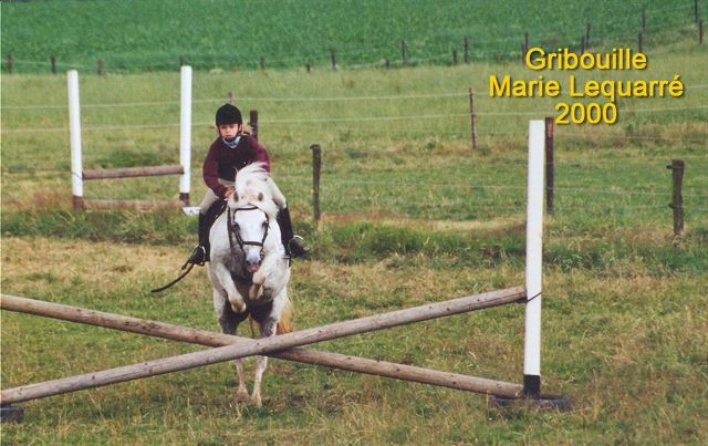 Mais Gribouille c'était aussi une jolie ponette. L'image de sa crinière flottant au vent du galop (allant jusqu'à recouvrir la cuisse des cavaliers) est un souvenir charmant. Pendant treize ans, elle a assuré régulièrement son service au manège sans ennui de santé ni autre souci important. Elle a été la monture de très nombreux élèves lors des cycles d'obstacle. Elle a permis la réussite d'une flopée d'examens.