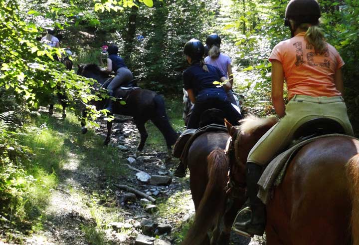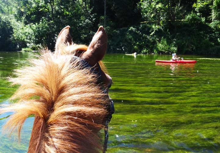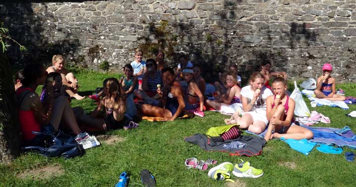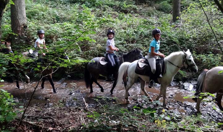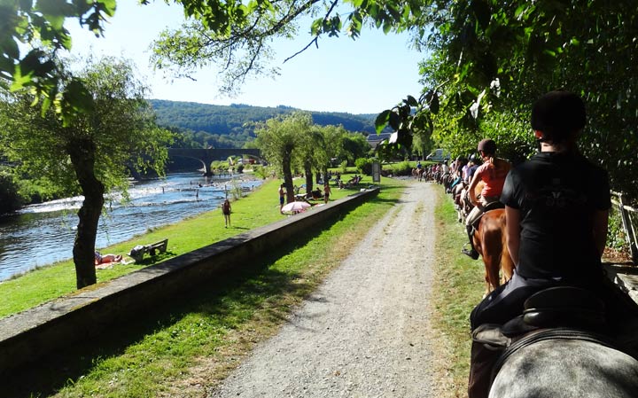 En dégustant une glace lors d'une escapade au bord de la Semois à Vresse, les cavaliers essaient