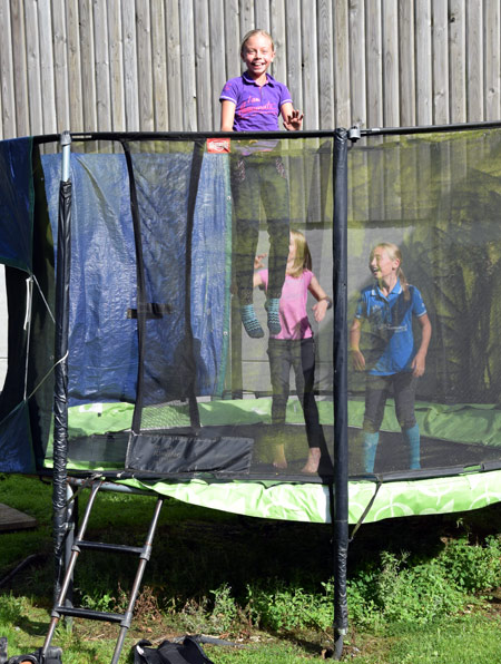 Le trampoline ! On s'y presse du matin au soir, mais à trois, pas plus ! En gravitation, Elly Pousset.