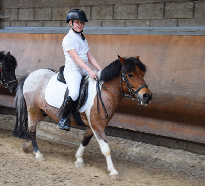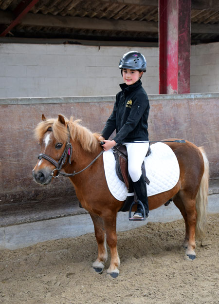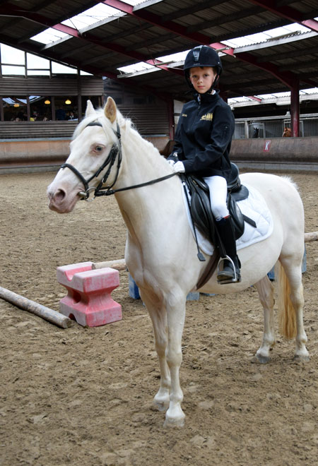 Concentration maximale au licol blanc. Clara Solheid (Haribo) devance Soline Evrard ( Umpalumpa) pendant l'exercice en amazone.