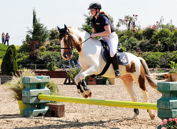 des obstacles dont il n'a pas l'habitude! J'adore sa façon de sauter. Il part de loin.