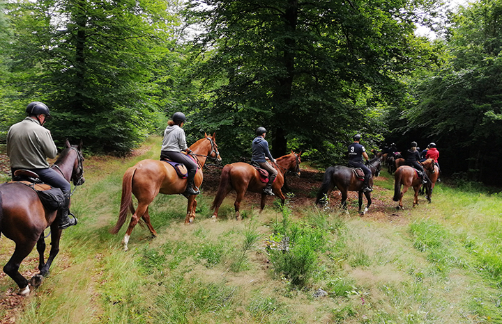 Vingt-trois personnes à cheval, région de la Semois, gîte à Ucimont du 10 au 16 juillet 2021. photo B. Melen