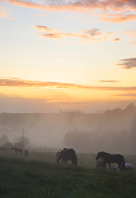 La nuit vient. Les chevaux sont arrivés en camion depuis quelques heures.