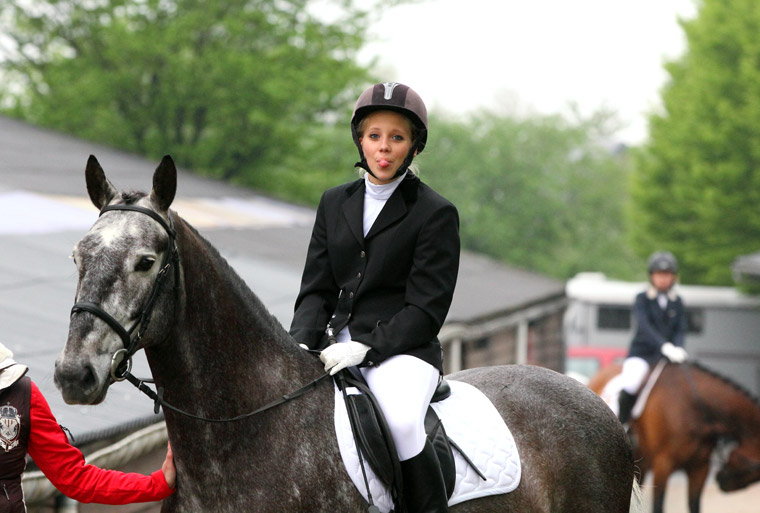 Julie Beuken, décontractée avant le dressage sur Fuente