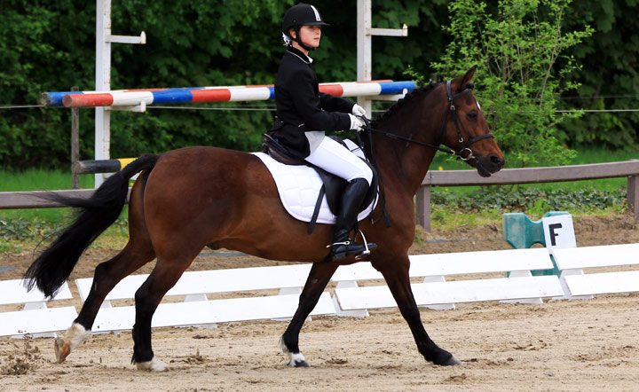 En dressage, Sato le poney d’Elsa Sarlet (1er D) est sorti du rectangle