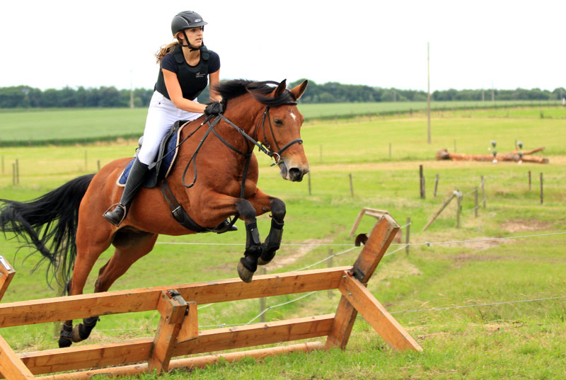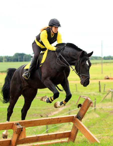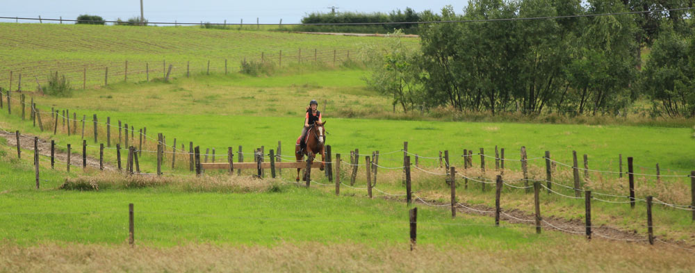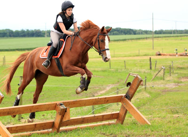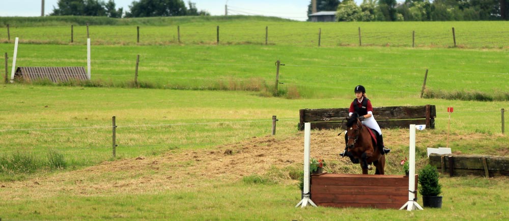 Laura Vyghen et Rébaby sur l'obstacle 5, un table étroite et assez large qui venait 3 ou 4 foulées après le contre-bas.