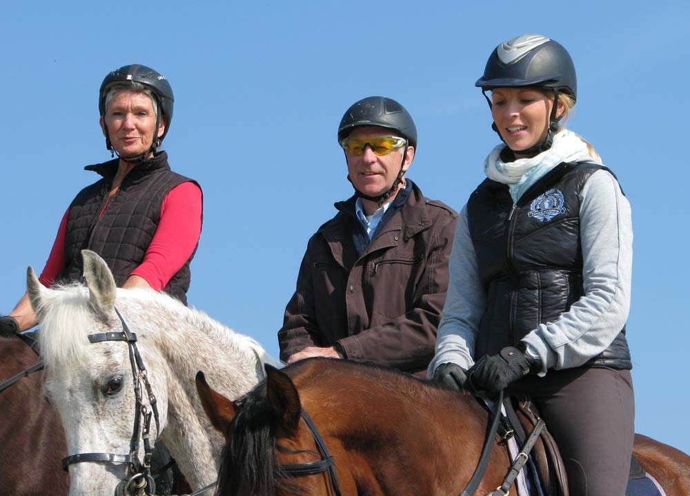 Devant un parc à moules, Brigitte Wijzen (Marbre-Rouge) précède Els Vrielynck (Majoli) et Dany Dobbelstein sur son Pedro, un 6 ans de qualité.