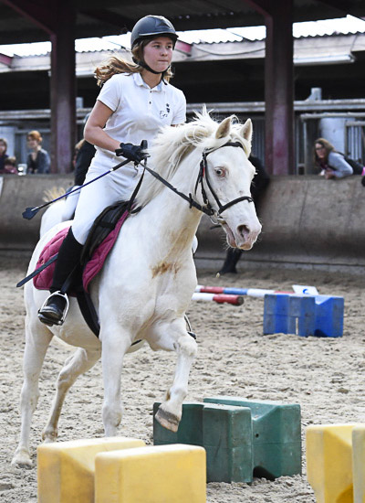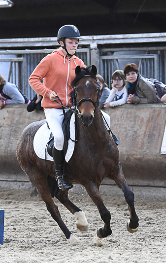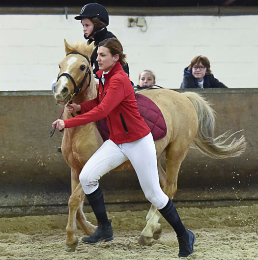 La monitrice Chloé Doutrewé ne ménage pas sa peine. Elle aide Charline Kerff en menant Juju.