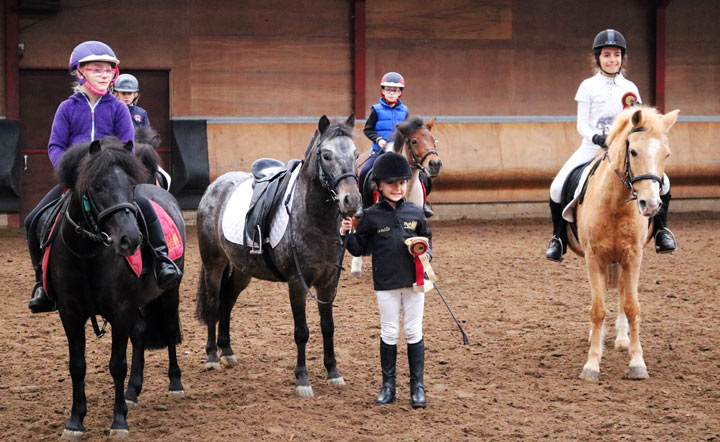 Au centre Camille Michel tient Gepetto. Elle a remporté la coupe d'un des deux groupes des jeux poneys.