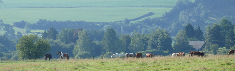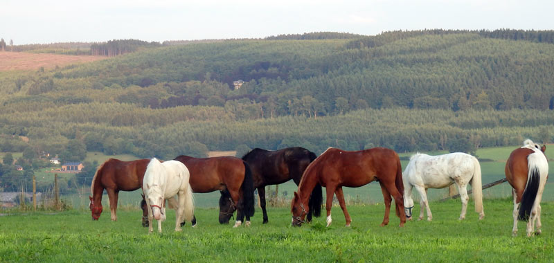 Les chevaux relâchés explorent la vallée de la Lienne. Plus loin le ruisseau de Chavanne