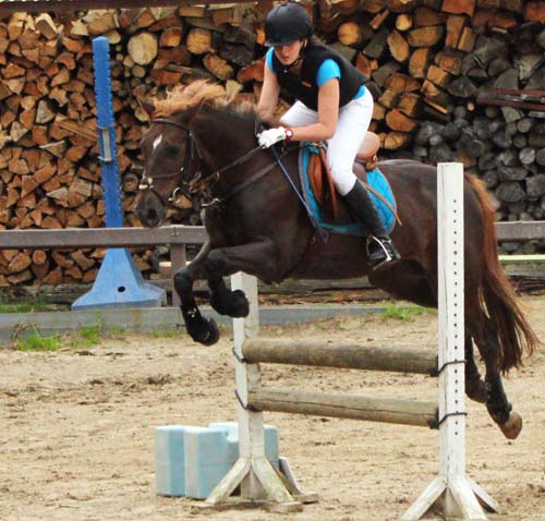Lors de la puissance. La minuscule Izadora, montée par Emilie Degueldre étonne en franchissant 1m 40. Au général 80 + handicap, Julie Kinna (Orgeval)